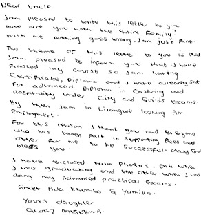 The theme of this letter to you is that I am pleased to inform you that I have finished my course so I am having certificate, diploma and I have already sat for advanced diploma in catering and hospitality under City and Guilds exams.
