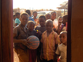 Een particulier heeft 25 basketballen geschonken. Na 5 weken had de bevolking het spel aardig onder de knie en gingen Alfred en Khumbo tevreden weer naar huis.
